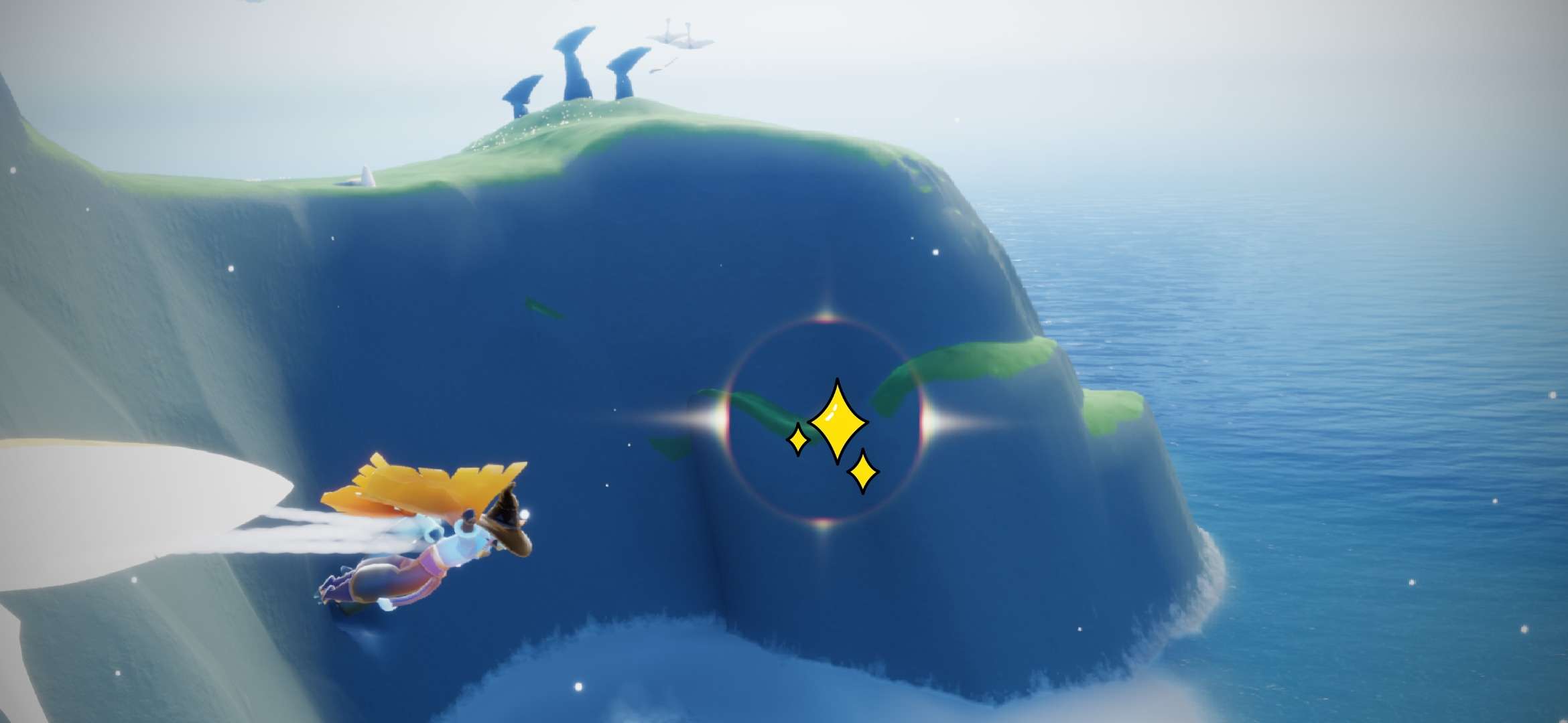 星星✨标志的一个浮岛平台上就可以看见光翼的位置啦