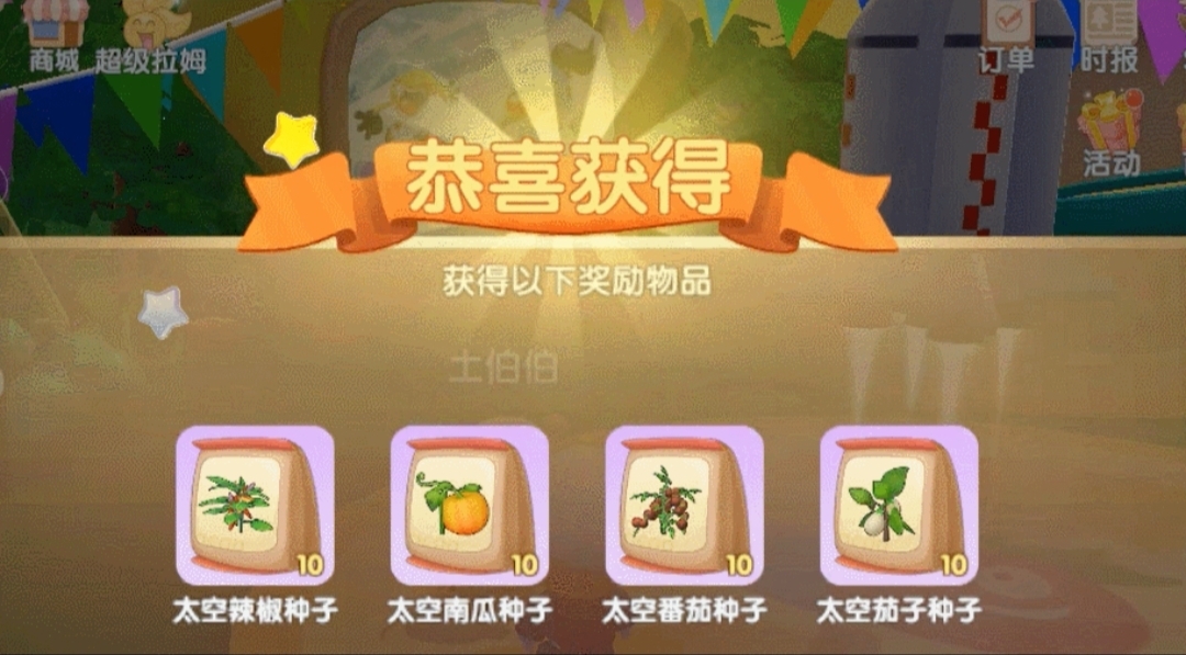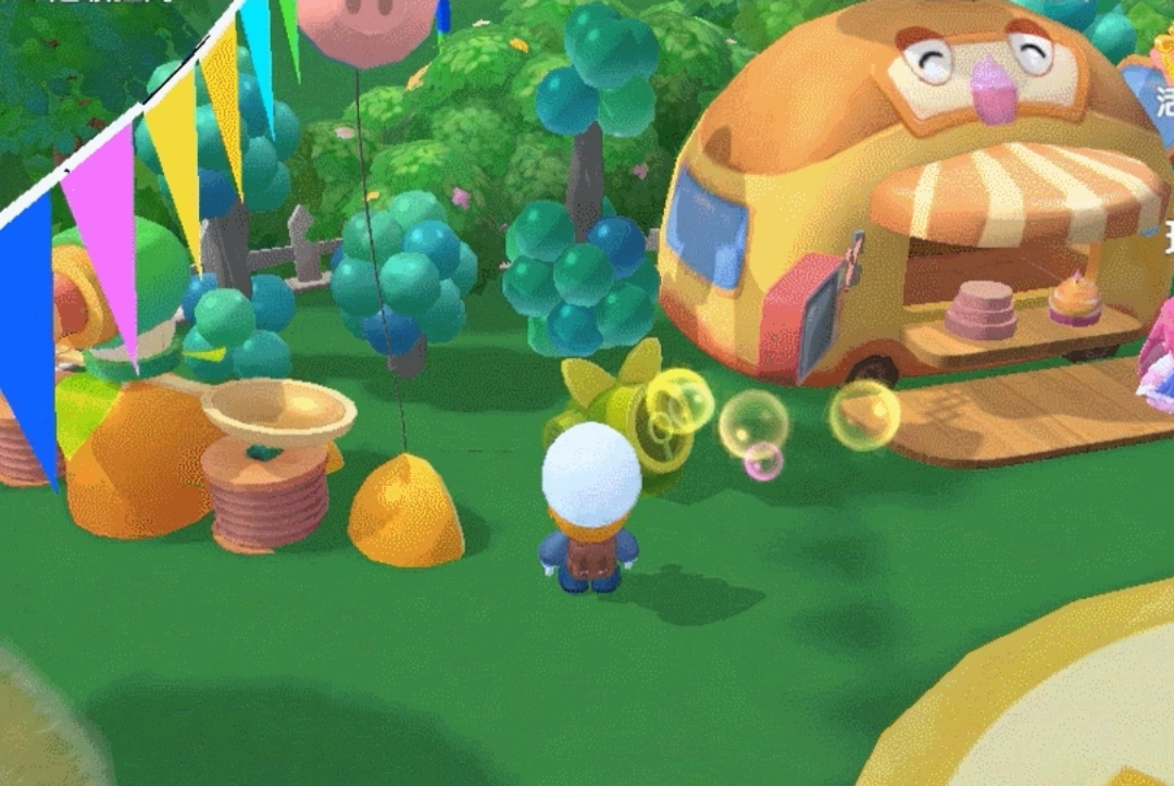 坐骑琦琦身旁还有自动泡泡机,点击可以发射泡泡~别忘了土伯伯也在这儿哦,记得来找他领取种子~(仔细看后面发射出去的火箭,是飞上太空去取种子吗?)