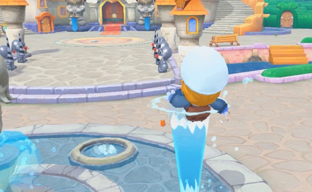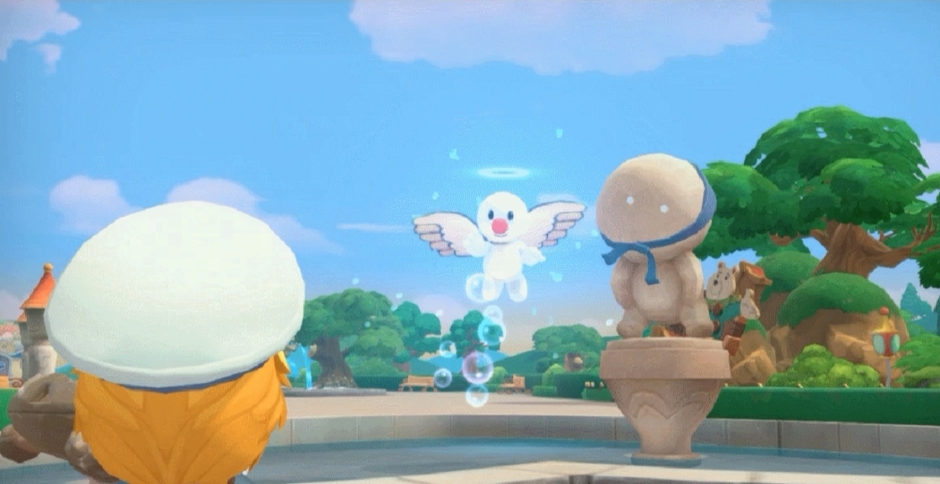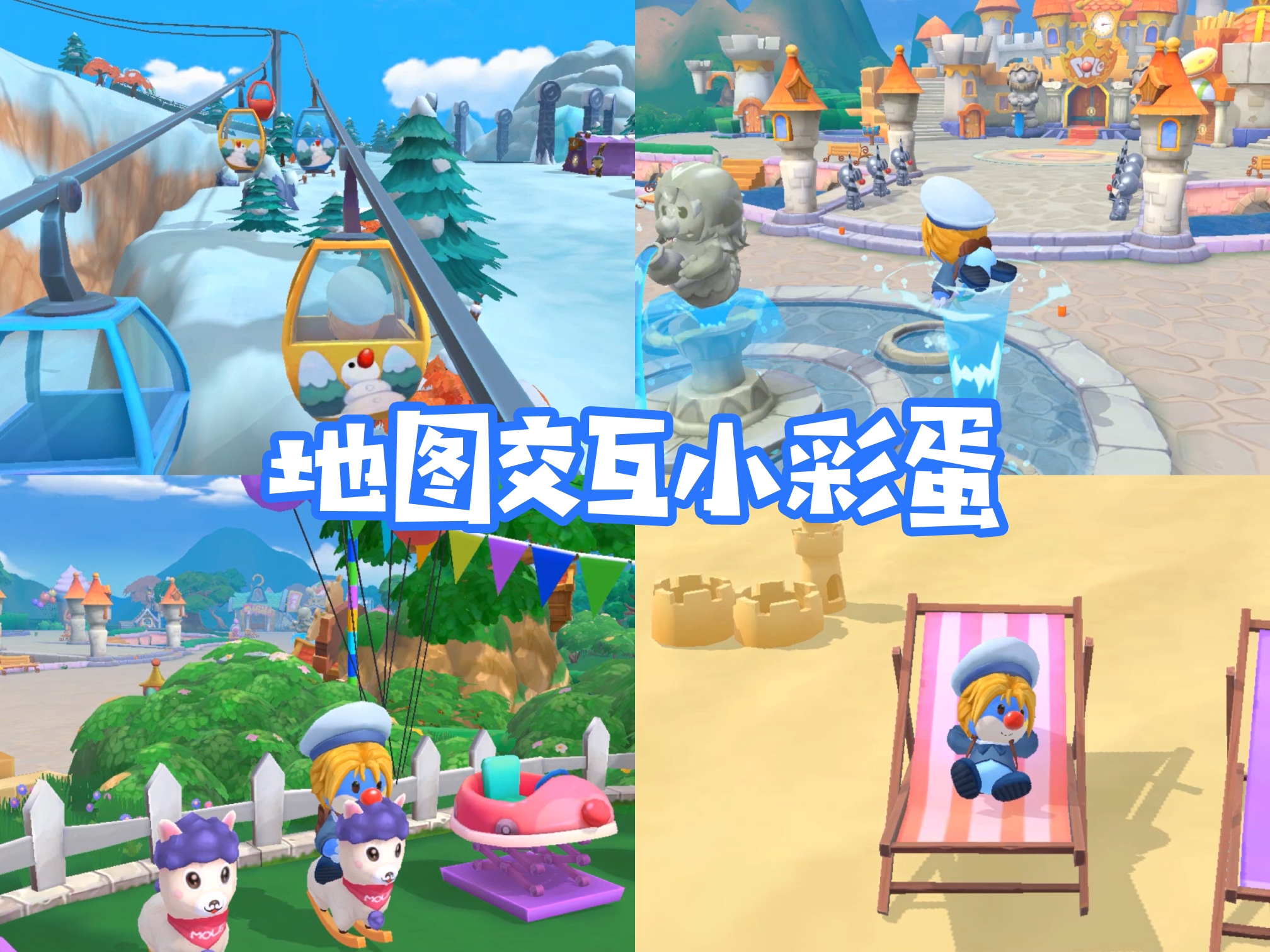 许愿池,每天去许个愿,第二天就会有个漂流瓶在水面,可以领取奖励哦!派对广场上有好多可以交互的小彩蛋~