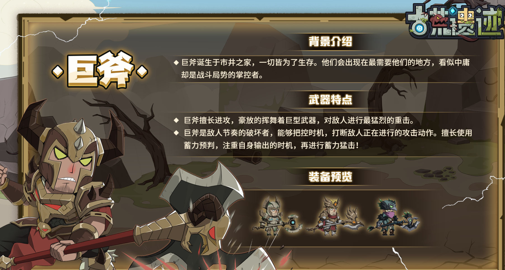 亲爱的探险家大人们好啊!《古荒遗迹》即将正式上线!一个神秘的古荒世界等着探险家们去探寻。《古荒遗迹》拥有四种基础武器,分别为刀盾、巨斧、法杖和双剑。每种武器都有不同的技能和进攻特性,各位探险家们可以选择适合自己的武器在秘境进行冒险。