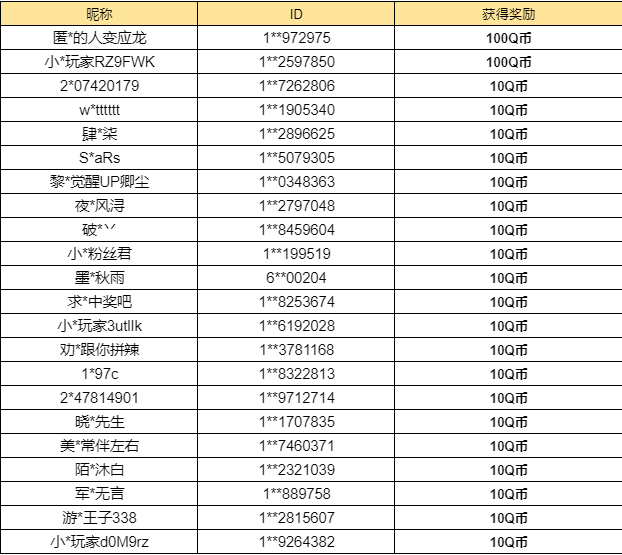 为了保护大家的个人隐私,以后开奖信息将由部分屏蔽的昵称+ID组成,小伙伴们可一定要仔细核对哦~