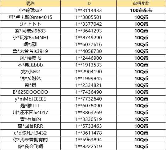 为了保护大家的个人隐私,以后开奖信息将由部分屏蔽的昵称+ID组成,小伙伴们可一定要仔细核对哦~