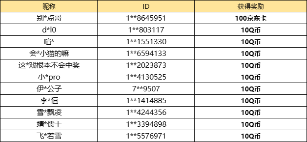 为了保护大家的个人隐私,以后开奖信息将由部分屏蔽的昵称+ID组成,小伙伴们可一定要仔细核对哦~