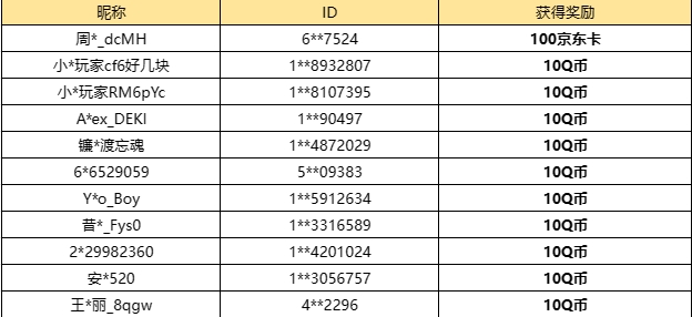 为了保护大家的个人隐私,以后开奖信息将由部分屏蔽的昵称+ID组成,小伙伴们可一定要仔细核对哦~
