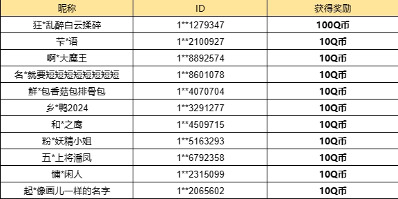 为了保护大家的个人隐私,以后开奖信息将由部分屏蔽的昵称+ID组成,小伙伴们可一定要仔细核对哦~