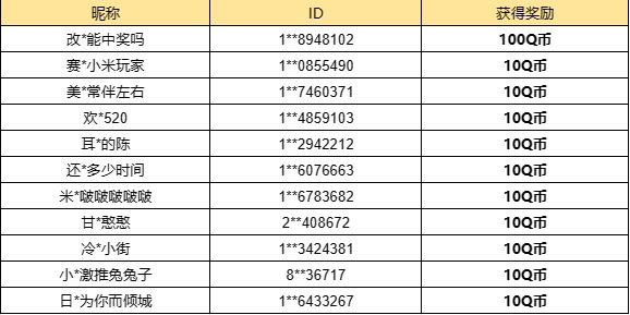 为了保护大家的个人隐私,以后开奖信息将由部分屏蔽的昵称+ID组成,小伙伴们可一定要仔细核对哦~