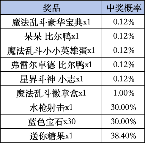 5、完成对局任务抽好礼:活动期间,每消耗1抽奖积分可以参与1次抽奖活动,抽奖奖品以抽奖界面结果即时发放,奖励将会通过游戏内邮件进行发放(领取有效期15天);奖品概率公示如下: