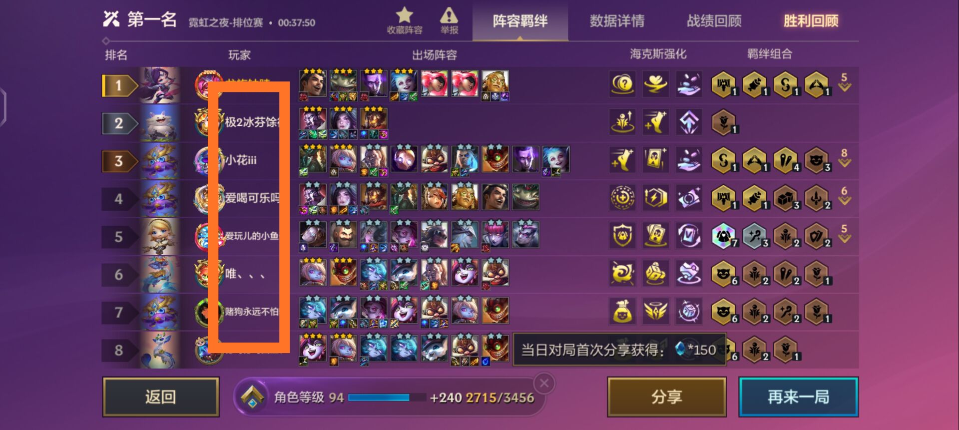 这一局还真是神仙打架,已经不能叫金铲铲之战了,应该叫三星五费之战!可以看出第一和第二是差了个三星五费,所以没打赢....
