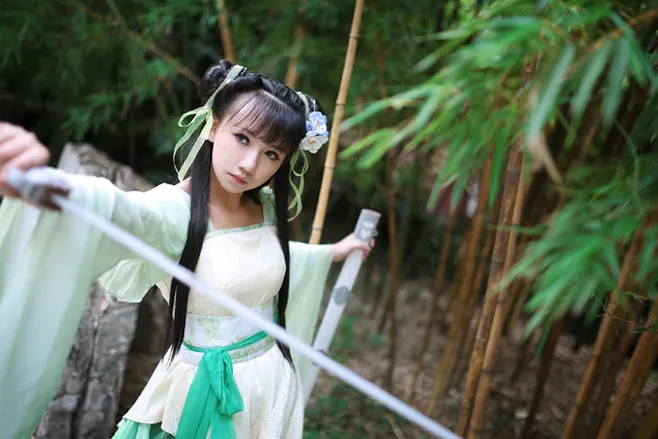 扮演的角色“天凤”是《九界伏魔录》中以远攻为主的职业流派。蓝白劲装,手持细剑。长着一张萌妹脸的鳗鱼,一身女侠装扮走出来,竟也没有什么违和感……这个角色真的是可盐可甜啊~