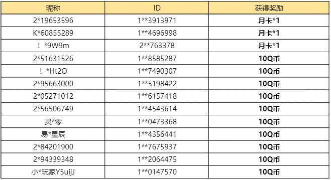 为了保护大家的个人隐私,以后开奖信息将由部分屏蔽的昵称+ID组成,小伙伴们可一定要仔细核对哦~
