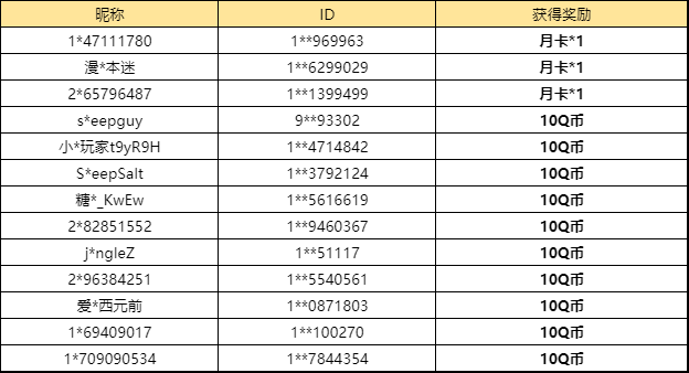 为了保护大家的个人隐私,以后开奖信息将由部分屏蔽的昵称+ID组成,小伙伴们可一定要仔细核对哦~