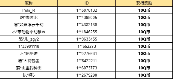 为了保护大家的个人隐私,以后开奖信息将由部分屏蔽的昵称+ID组成,小伙伴们可一定要仔细核对哦~