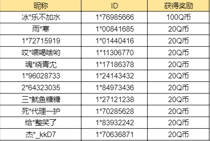 为了保护大家的个人隐私,以后开奖信息将由部分屏蔽的昵称+ID组成,小伙伴们可一定要仔细核对哦~