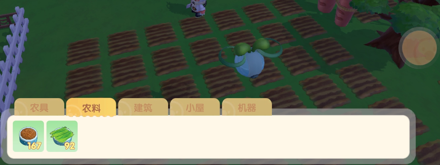 另一个是农料,储存种子的地方,选择种子点击播种就可以播种啦,这里种子已经被我用光了。