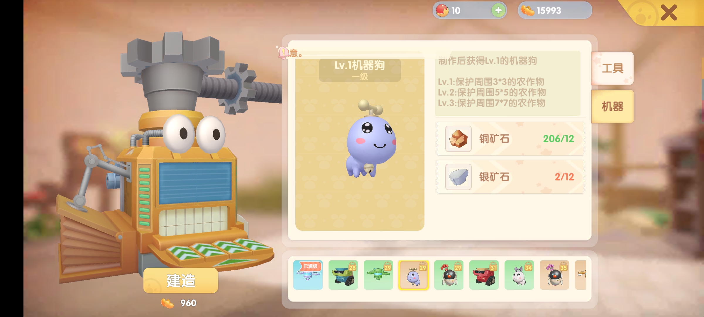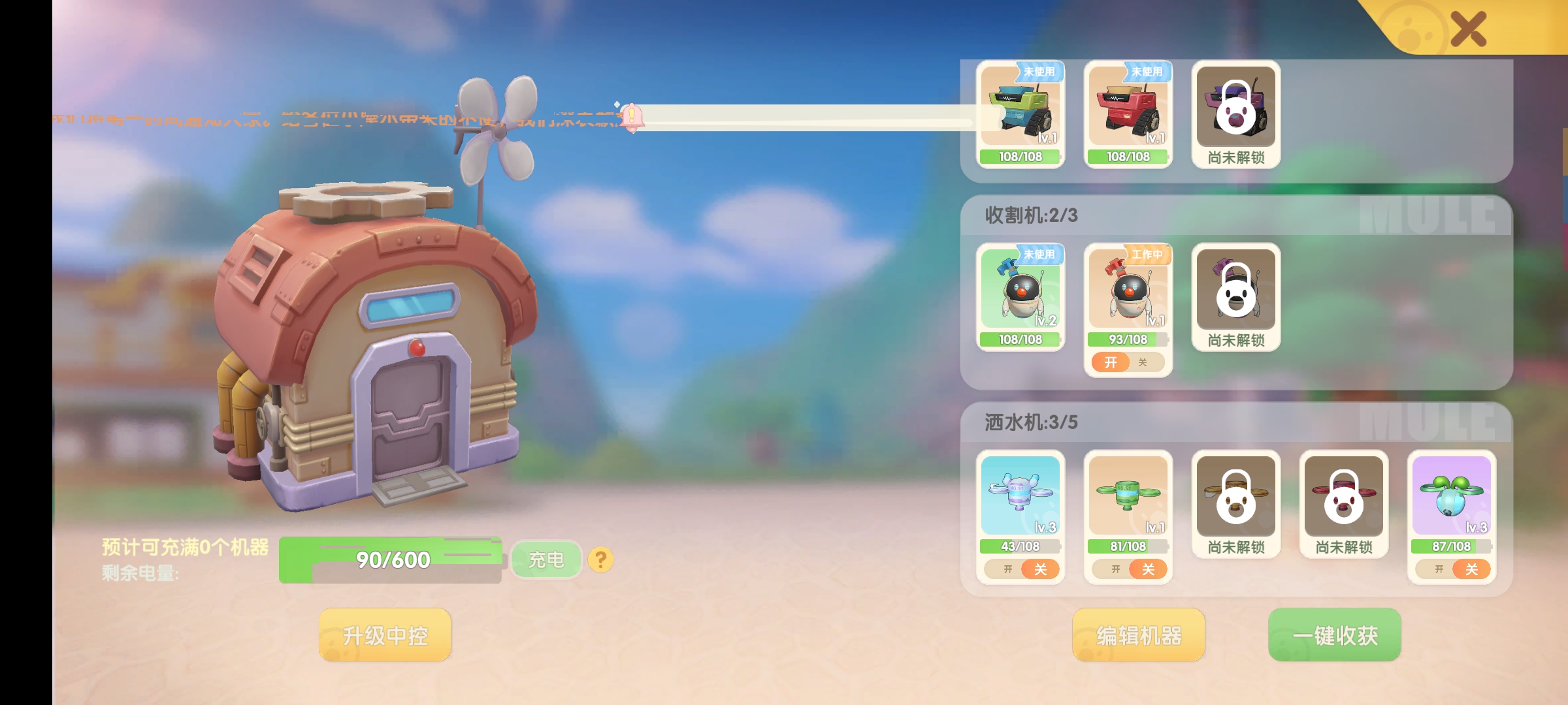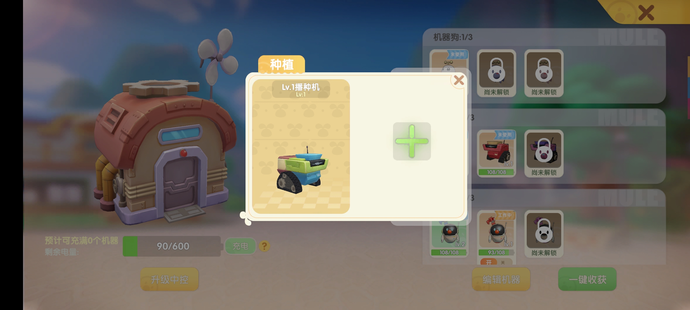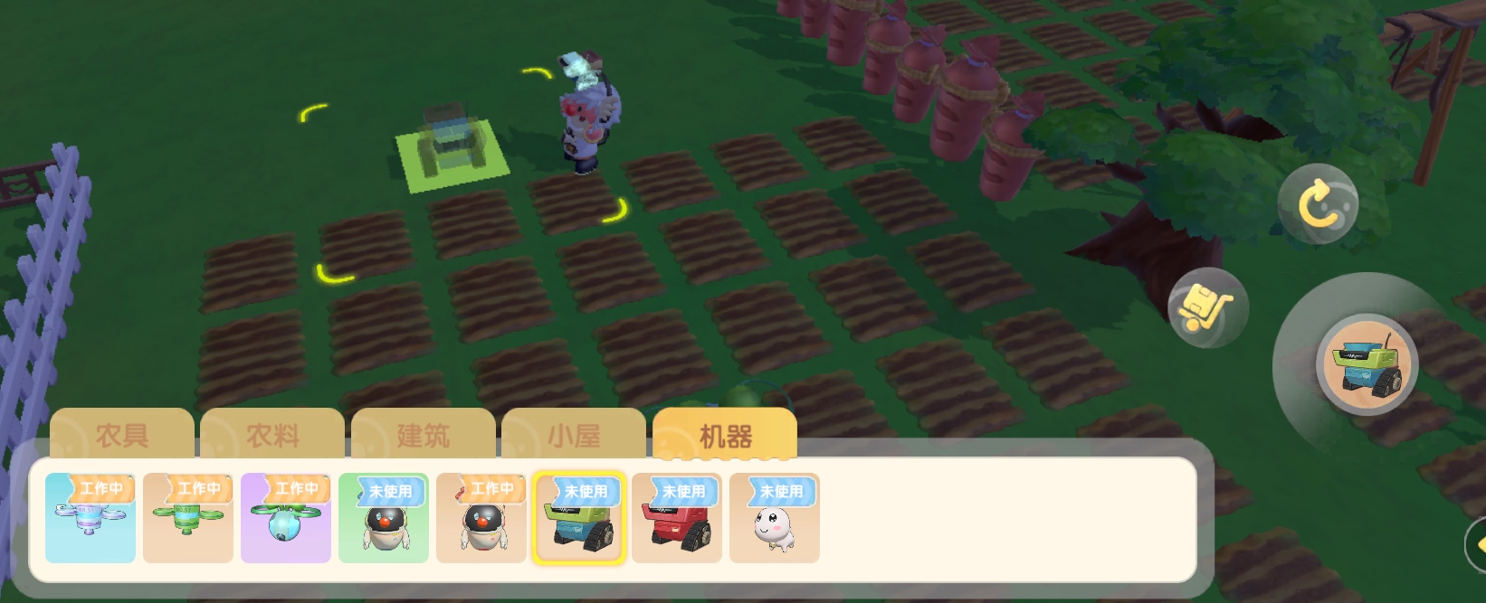 收割机可以帮你自动收割成熟的植物,收割的植物会自动储存在控制小屋,而小狗可以防止被别人偷菜。