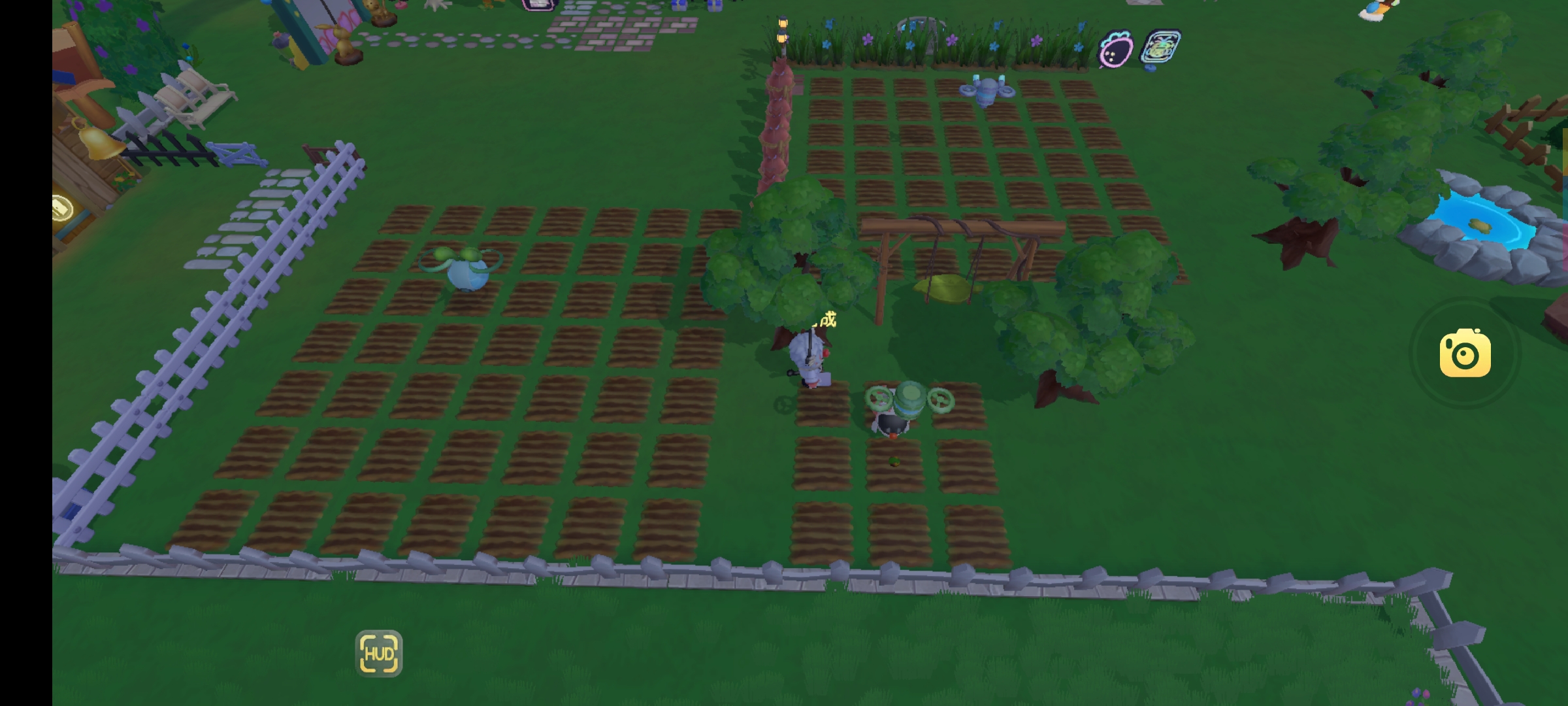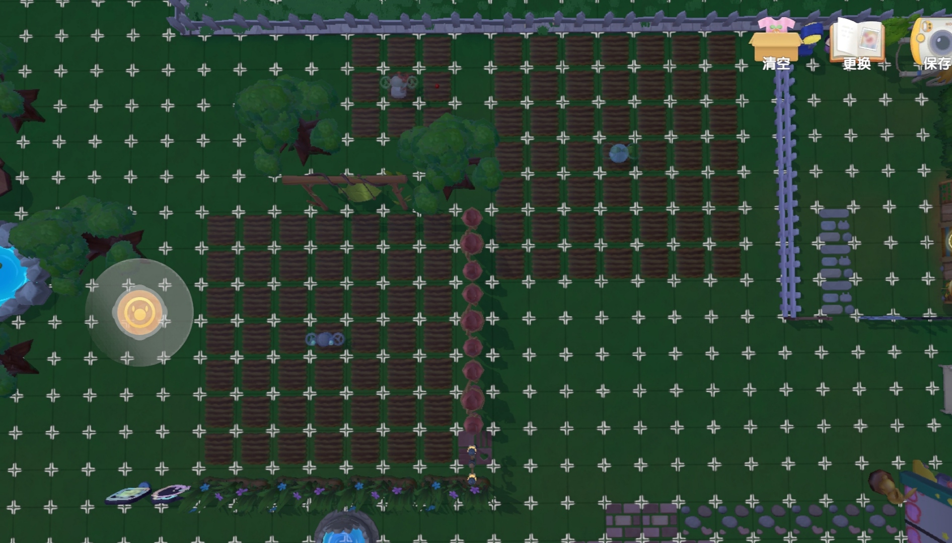 机械和植物是可以在同一个地上的,所以放心放置好啦,机械和机械也可以叠加,理想状态当然是洒水机+收割机比较好啦,像这样可以单独开辟一块地用来种植珍贵植物。