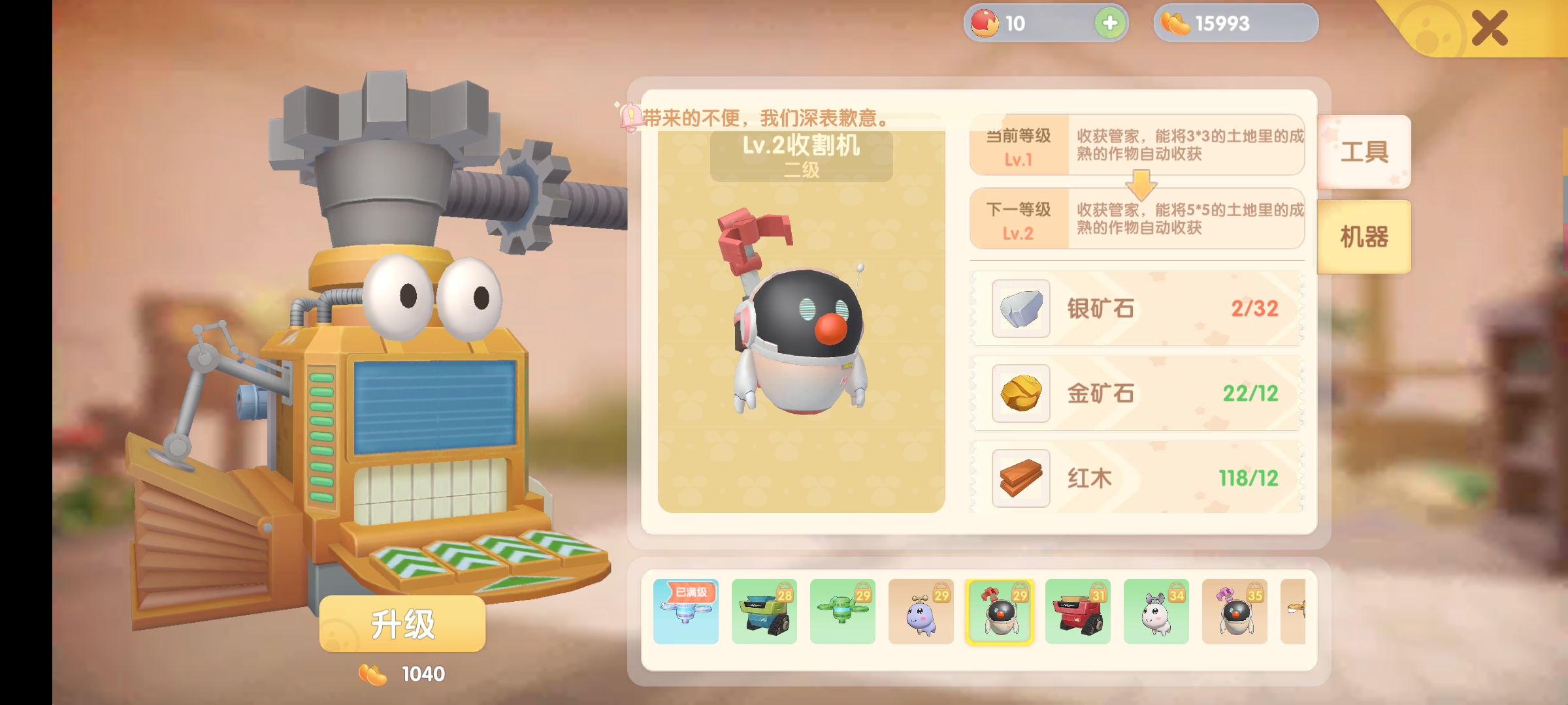 还有一个是机械,实用程度为洒水>收割>看守>播种