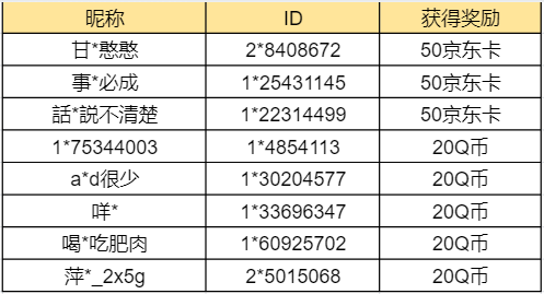 为了保护大家的个人隐私,以后开奖信息将由部分屏蔽的昵称+ID组成,小伙伴们可一定要仔细核对哦~