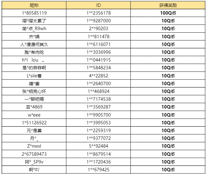 为了保护大家的个人隐私,以后开奖信息将由部分屏蔽的昵称+ID组成,小伙伴们可一定要仔细核对哦~