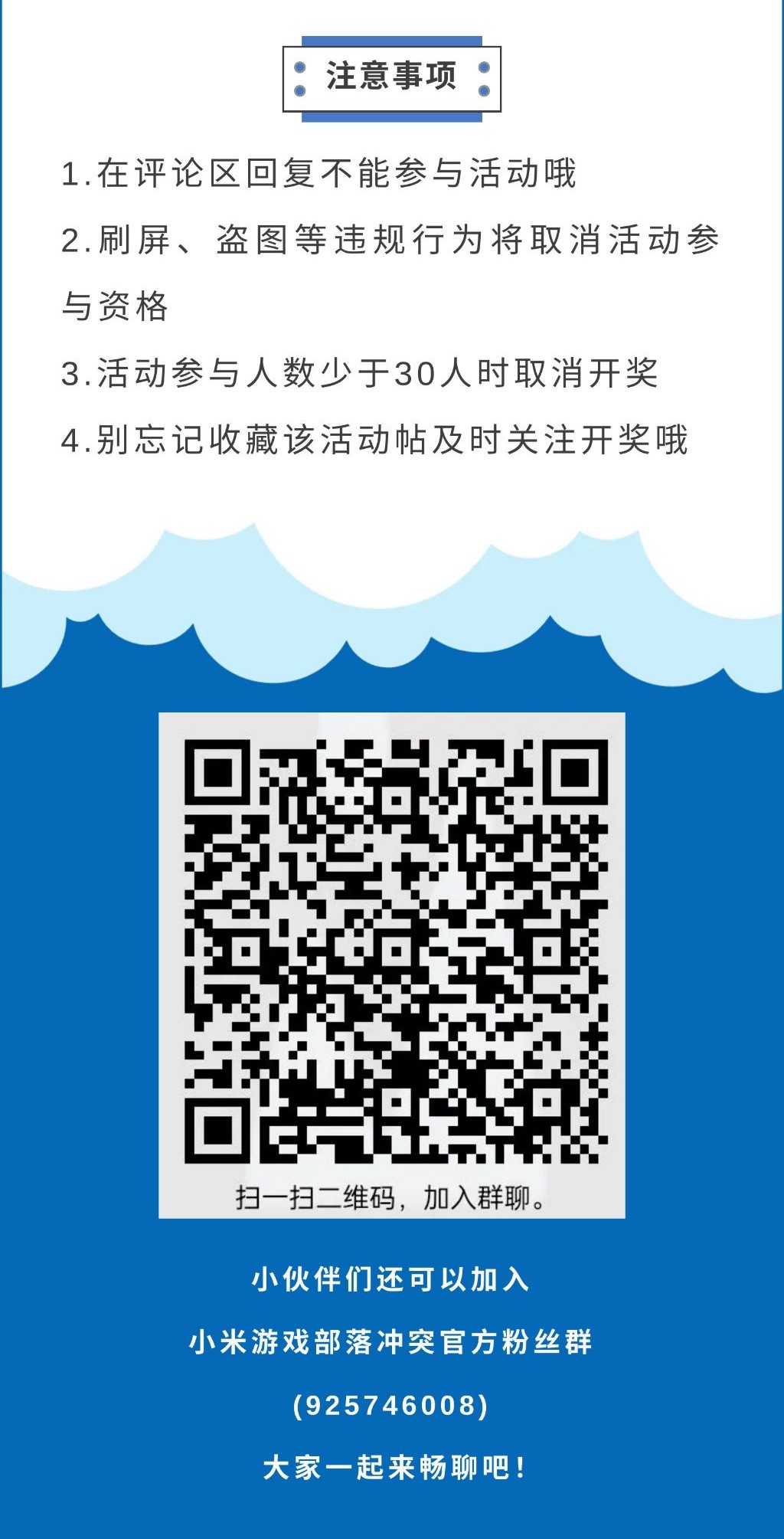 请获奖的玩家于一周内添加小米游戏中心社区活动发奖群:141841827,进群后自助填写群内公告置顶项——活动中奖登记表,逾期(兑奖登记截止日期:12月30日)视为放弃奖励,注意填写时不要漏项哦~ 没有中奖的小伙伴们也不要灰心,持续关注小管家,活动多多,奖品多多,惊喜多多!