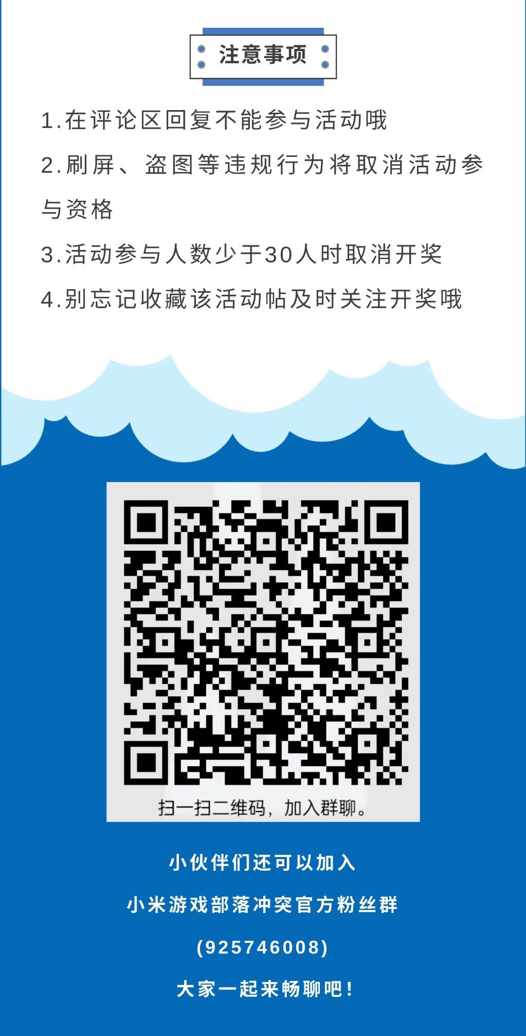请获奖的玩家于一周内添加小米游戏中心社区活动发奖群:141841827,进群后自助填写群内公告置顶项——活动中奖登记表,逾期(兑奖登记截止日期:1月26日)视为放弃奖励,注意填写时不要漏项哦~ 没有中奖的小伙伴们也不要灰心,持续关注小管家,活动多多,奖品多多,惊喜多多!