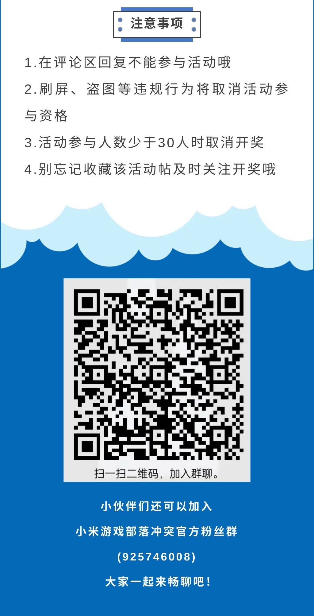 请获奖的玩家于一周内添加小米游戏中心社区活动发奖群:141841827,进群后自助填写群内公告置顶项——活动中奖登记表,逾期(兑奖登记截止日期:3月1日)视为放弃奖励,注意填写时不要漏项哦~ 没有中奖的小伙伴们也不要灰心,持续关注小管家,活动多多,奖品多多,惊喜多多!