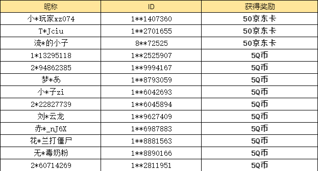 为了保护大家的个人隐私,以后开奖信息将由部分屏蔽的昵称+ID组成,小伙伴们可一定要仔细核对哦~
