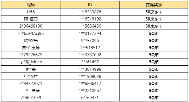为了保护大家的个人隐私,以后开奖信息将由部分屏蔽的昵称+ID组成,小伙伴们可一定要仔细核对哦~