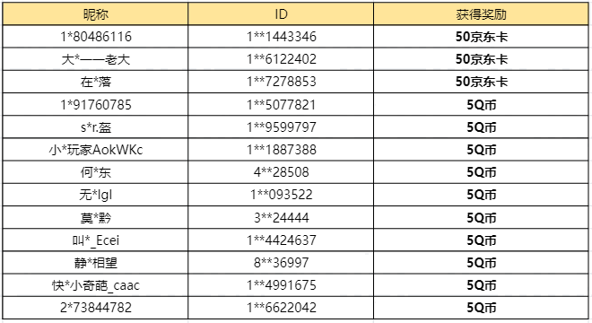 为了保护大家的个人隐私,以后开奖信息将由部分屏蔽的昵称+ID组成,小伙伴们可一定要仔细核对哦~