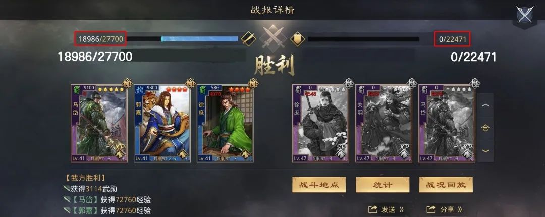 释放【全军突击】的前提是自身能够正常行动,而【谋定后动】的洞察效果保证了关羽在大多数情况下能够正常行动!关羽速度比马岱徐庶快,【全军突击】的效果能最大化! 马岱只需要队友叠好被动buff就能打出高额的伤害,不需要再带输出类战法。马岱带上【磐阵善守】【战必断金】,能够为队伍提供较好地生存和输出环境。