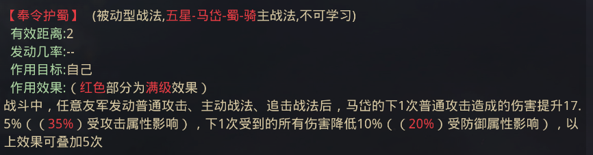 蜀骑的队伍组合有很多,但马岱是不可或缺的!了解队伍玩法机制是关键!蜀骑的核心武将就是马岱,其中的关键就在于他的主战法——奉令护蜀。