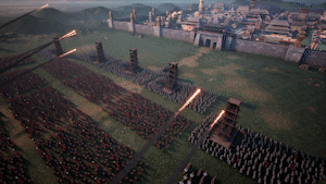 万千军马齐嘶,尘土飞扬,吕公车上的弓箭齐发,射向城楼。霹雳车上的火石炸裂,随着杠杆的拉动如流星陨落,撞击着脆弱的城墙。