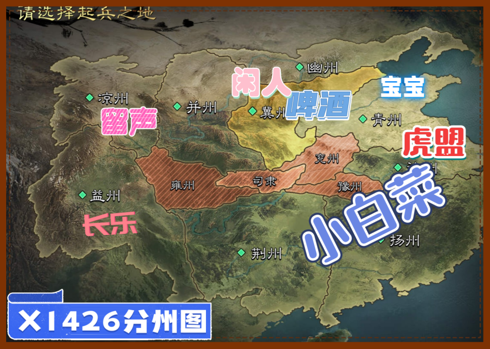 【小白菜】及其盟友【啤酒】,占据5州,其他几方一看,这还得了,他们发育起来谁能阻挡?【闲人】直接撞冀州【啤酒】,另外伸手进幽州谋求发展空间;【虎盟】更是放空益州,悍然来到青徐,直面压力,意图和【闲人】优先解决【啤酒】。