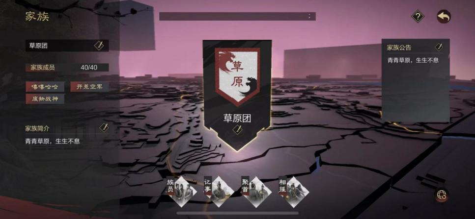 【草原团】为【胜天柒云阙】主力团之一,成立于700段强盟【柒联】,结识吸纳各区段高战玩家组合而成。初由【柒剑】、【风墨】、【北府】三团整合,历经率土数载。世界杯表现亮眼突出,为第二届邀请赛获奖世族。十几赛季以来,以快乐游戏,保持强度的理念,一直活跃在率土第一线。