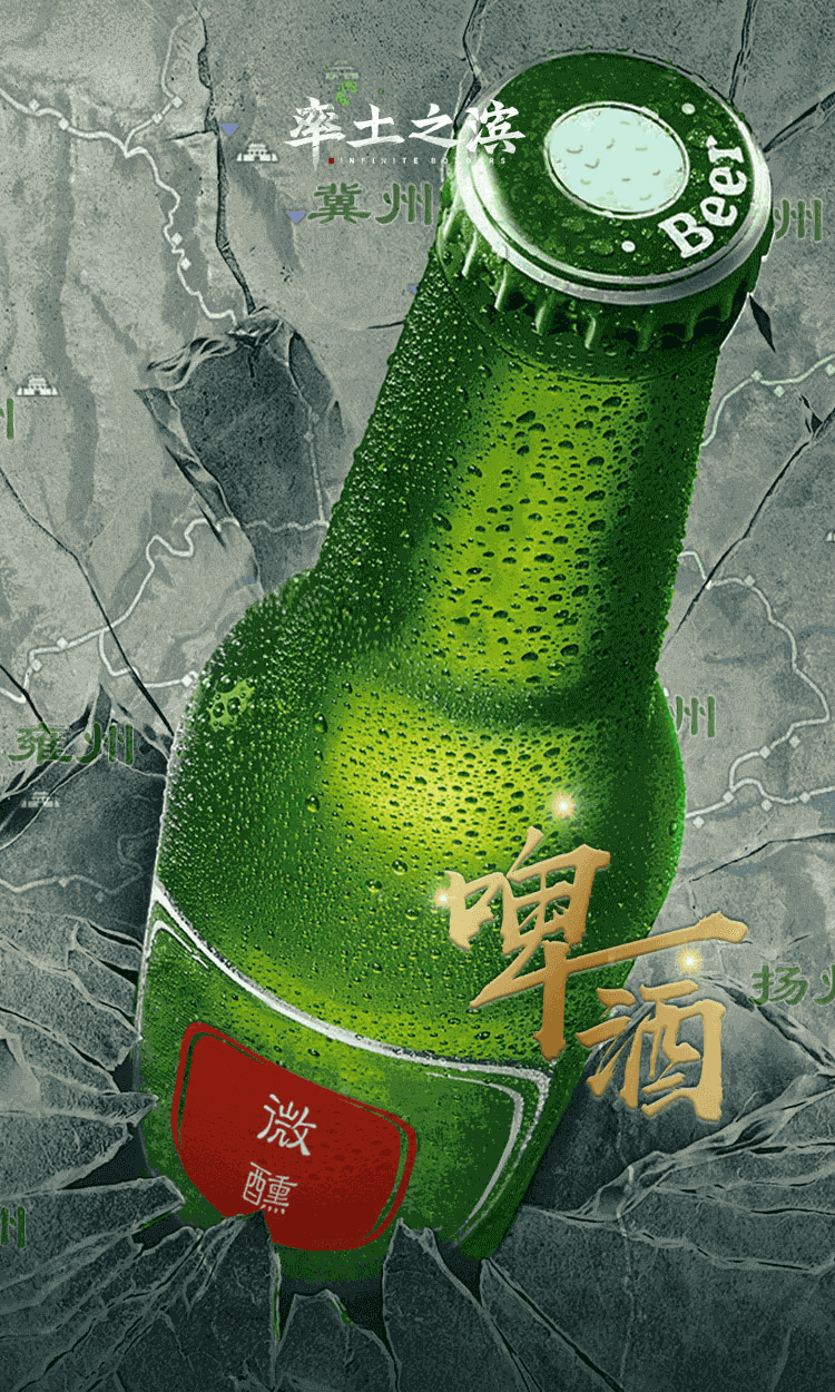 设计理念:因为团长爱喝酒,所以采用了酒瓶的元素,寓意“微醺”将鼎立于率土十三州!