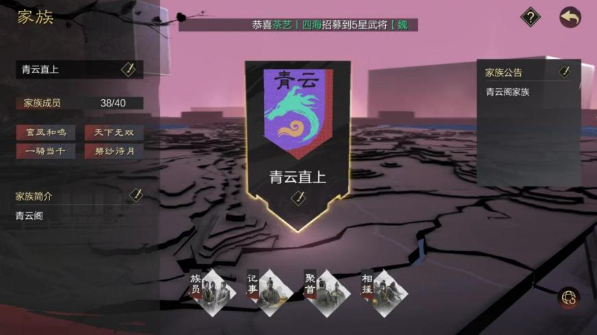 设计理念:【青云阁】历经风雨从未乱世,宗旨就是有共同理念的好朋友聚在一起,不躺尸不摆烂,直至战到最后时刻。虽然是率土芸芸众生中平凡的一员,但是只要团结一致,必定青云直上!