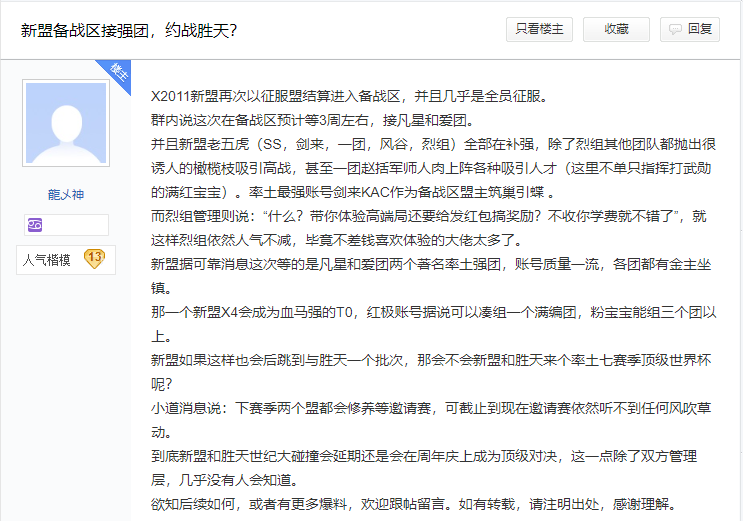 而新盟金主较为低调,但从龍乄神的只言片语中便可知道新盟的金主数量和实力不在胜天之下,或者人人都是金主?