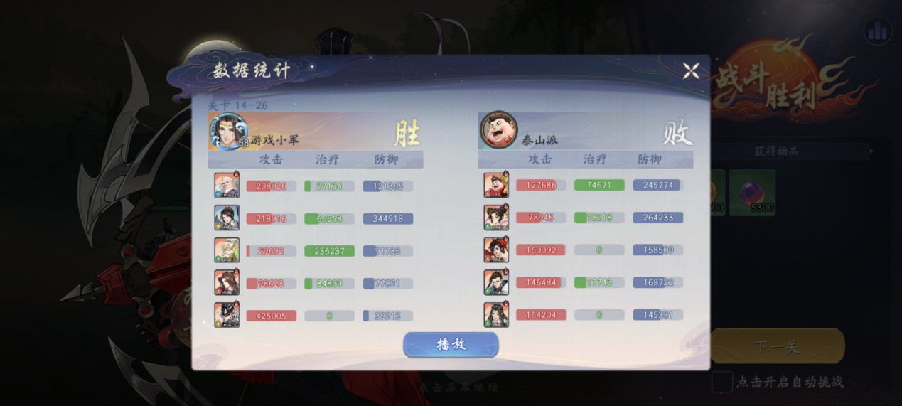 在我的阵容里,无双小姐姐任主力前排。她还是挡下了不少伤害。当然,她在我这里,品阶最高,装备也好。况且对面没有一个切后排的侠客。李延广的输出就直接高出左寒修和无双小姐姐的两倍。