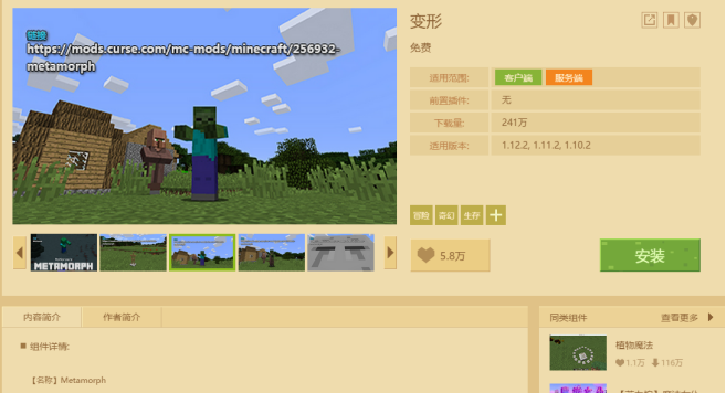 众所周知,在《我的世界》里除去史蒂夫外还是有很多能动的东西。它们有的是史蒂夫的储备粮,有的是史蒂夫的冤大头,更多的是史蒂夫的敌人。被它们追打的日子对于史蒂夫来说真的很难受,有时候打不过甚至想加入进去了。所以作者McHorse就给各位想投敌或者希望玩重生那一类的史蒂夫提供了“机会”,来变个形就可以了~