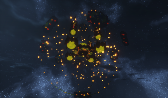 换个角度就看出跟一般烟花的差距了,原来这个球体并不完全是火星火球,中间还用正在燃烧火炬状的不明物体漂浮着,不愧是大神的魔法球。