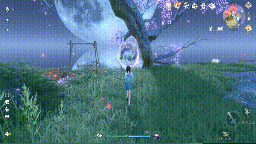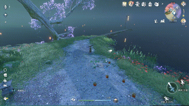子时(现实中每个小时的40分)会有天降流星落入镜湖,玩家靠近触碰流星就会忍不住跳起欢乐的舞蹈;