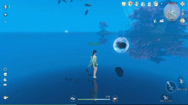 为了表明当前是在水下,当玩家在水下幻境移动时,还会带出一连串的气泡,绮丽幻妙。