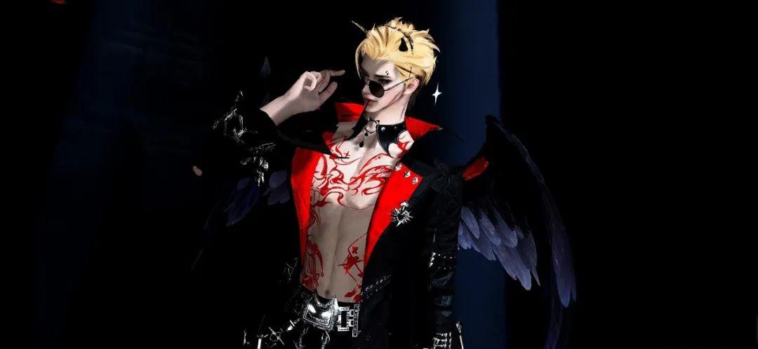 鲜红色的衣领极为抢眼,身后展开的墨色羽翼更添霸气。