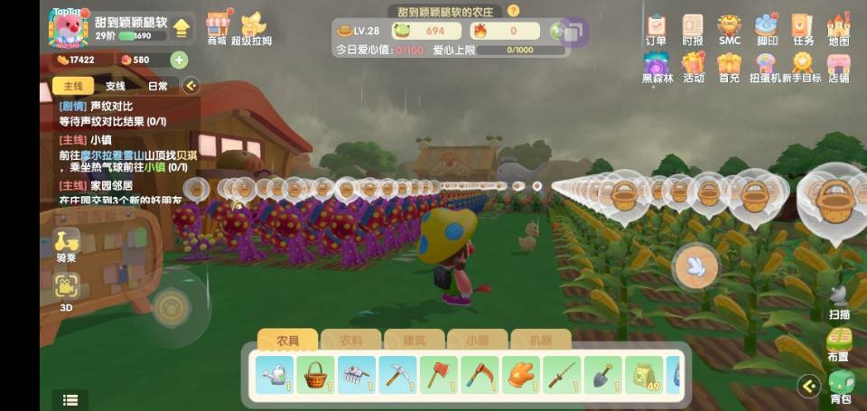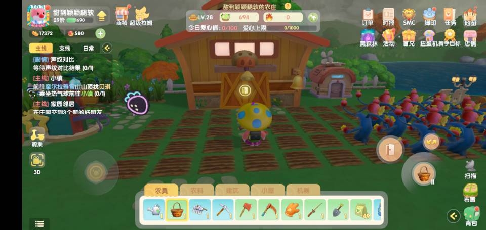 有很多小伙伴已经解锁了20阶啦,今天我来教大家如何喂养牛牛。建造牲畜小屋是需要先完成尤尤支线任务,我们可以前往阳光牧场,找到尤尤,与其对话完成任务,然后再去找汤米购买牲畜小屋,就可以进行修复了。