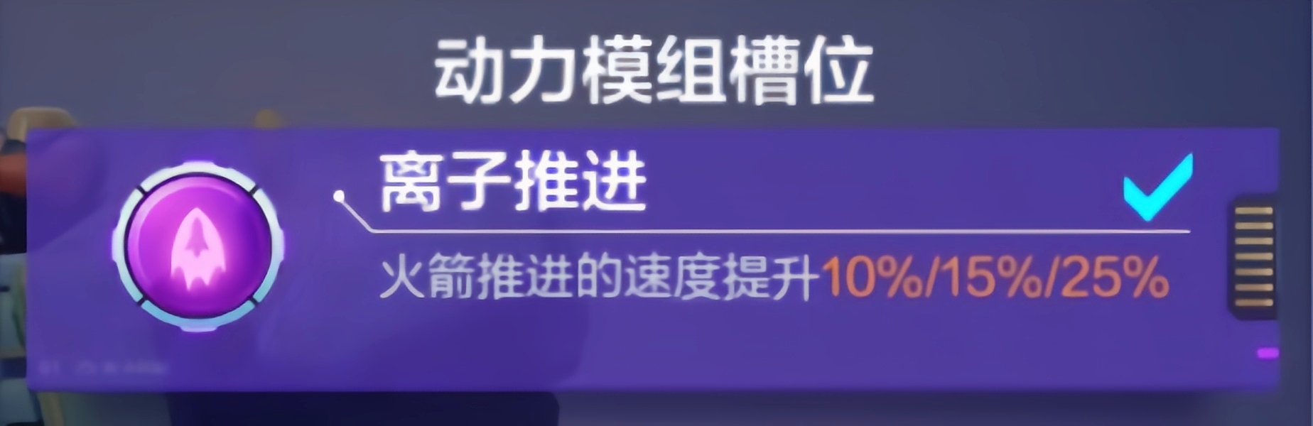 移动模组:火箭推进(5级开放)1.厄运最重要的模组,以加速推进来弥补自身机动性的不足,面对亚瑟中子星末日这种喜欢穿盾打架的尤为重要,在实战中也能更快的上高地,也能配合护盾位置一系列风骚微走位。
