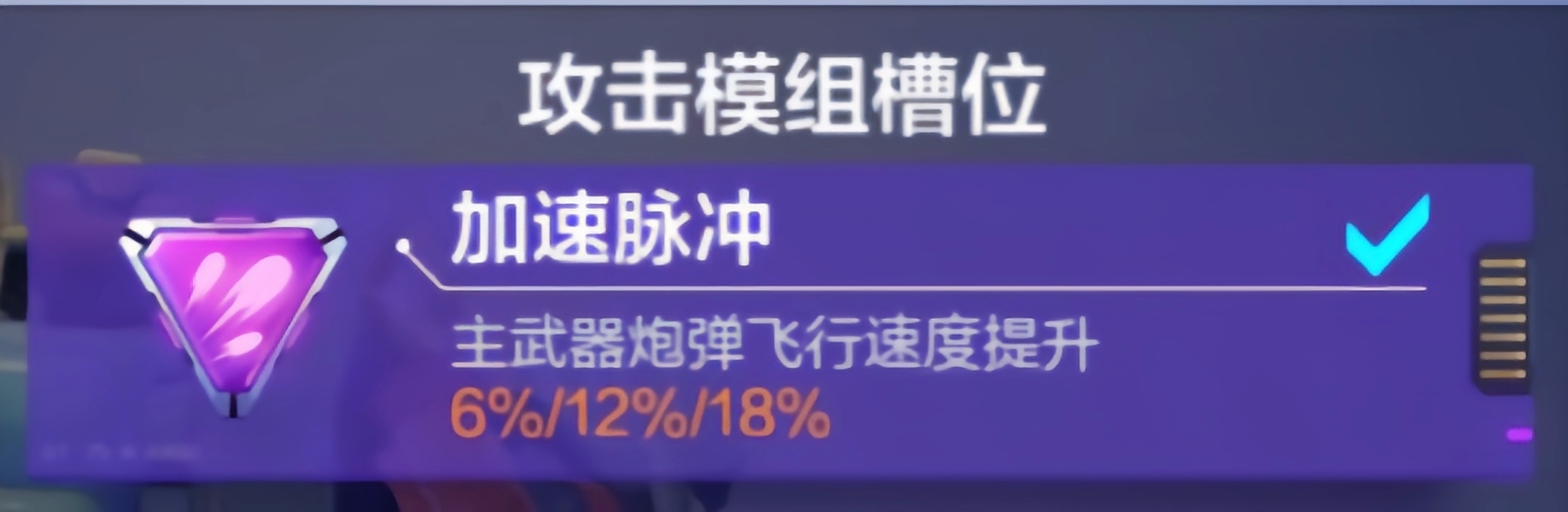 攻击模组:加速脉冲(25级开放) 1.无论是小队支援还是单排生存都是首选,加速弹道更容易命中远处和空中高速移动的目标,而光塔加伤模组起到的输出辅助作用远不及手炮加速,那一点加伤不如手炮多中一下。