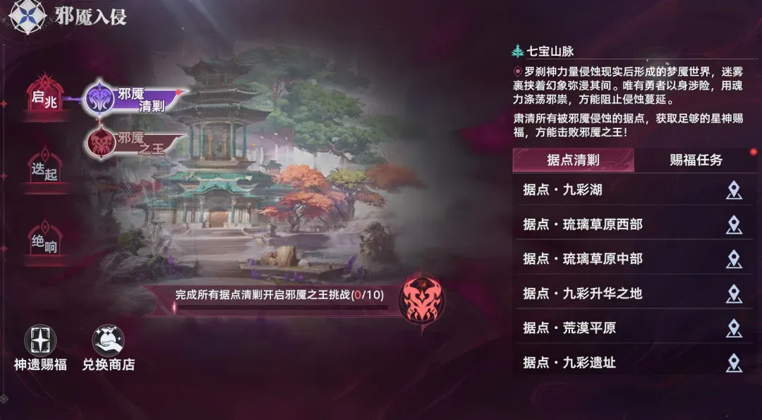 ● 魂师大大可通过【赐福任务】和【邪魇清剿】获得神遗赐福,神遗赐福会在【邪魇入侵】和【邪魇之王】挑战中生效。