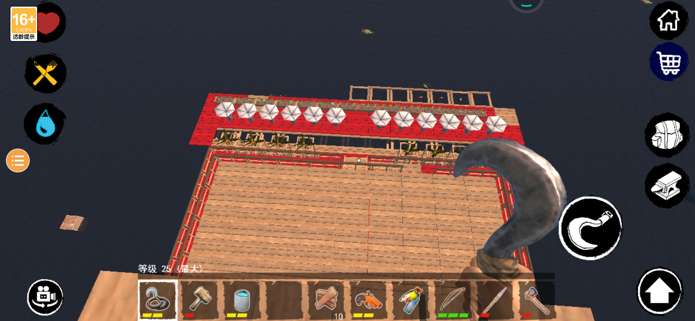 一、皮艇,用于出行上岛屿,没有这个就弄不到蓝图和稀缺物品;锚,抛锚后才能出行;