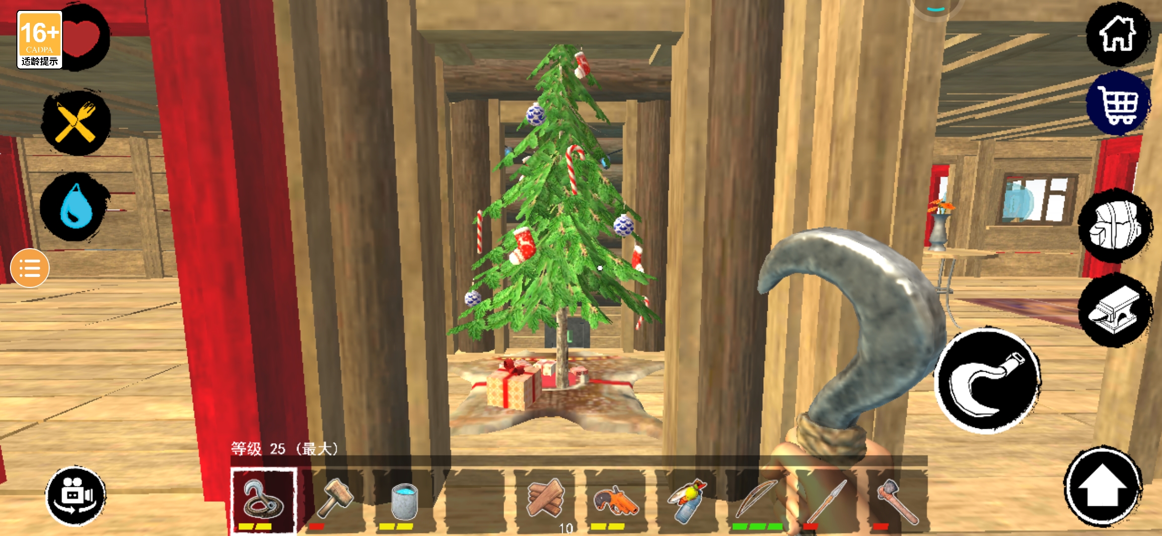 三、 圣诞岛,林子里有圣诞鹿,圣诞雪橇有若干资源箱。第一次上岛给圣诞树,建好后每二十分钟在树下有送来的资源包,一次比一次丰富。