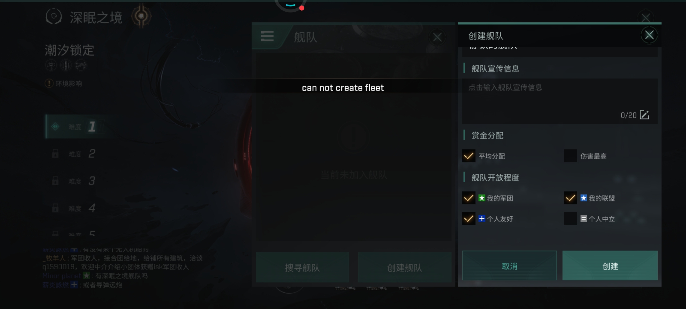 加入也创建不了深眠舰队,就是你们想的那种,我啥都懂但是就是进不去